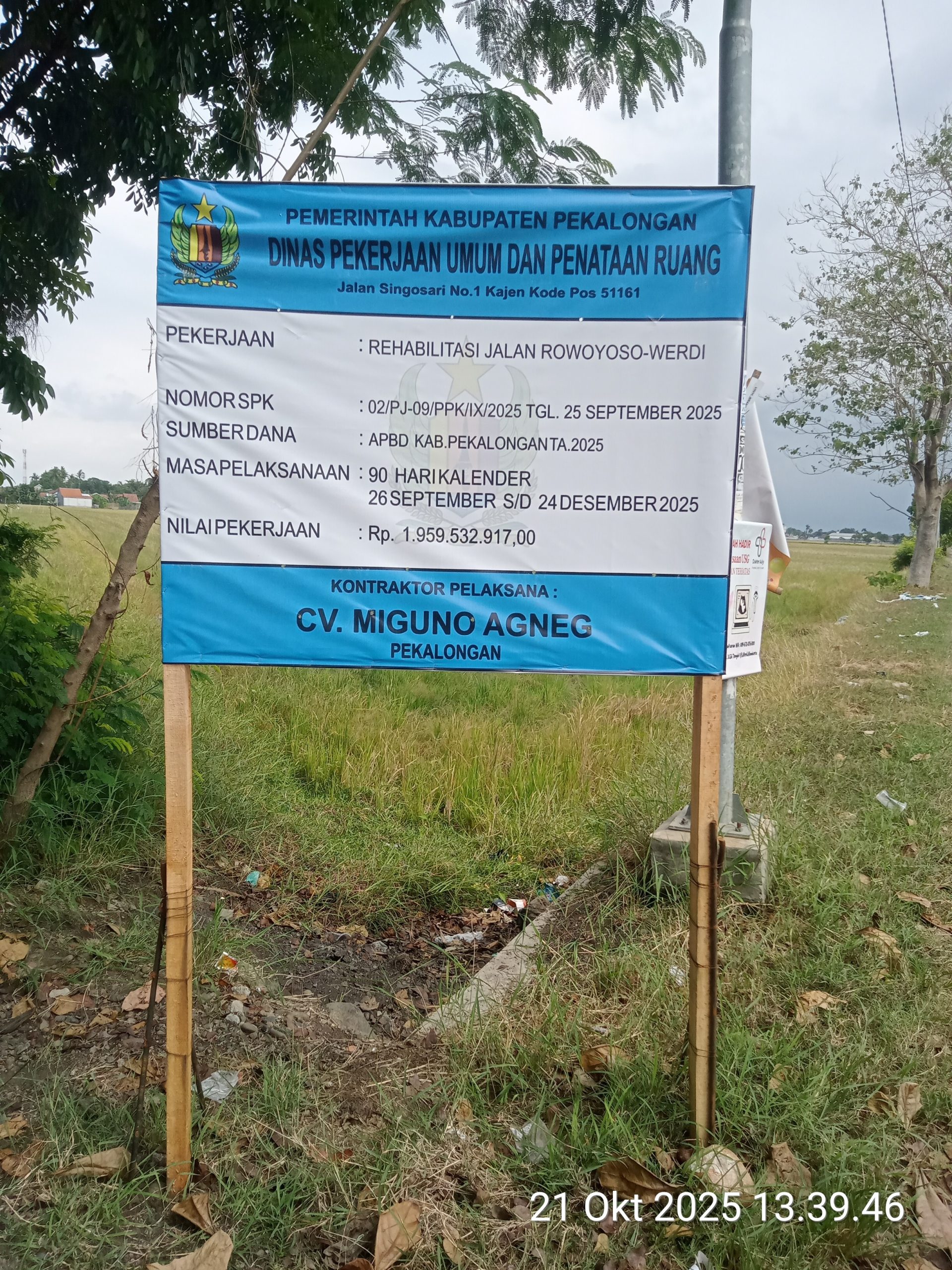 PEKALONGAN – Kilasfakta.com, Pemerintah Kabupaten Pekalongan melalui Dinas Pekerjaan Umum dan Penataan Ruang (DPUPR) akan melaksanakan rehabilitasi atau pengecoran jalan Rowoyoso-Werdi yang dilaksanakan oleh CV. Miguno Agneg dengan nilai anggaran Rp.1,959.532.917,00 menuai pertanyaan dari masyarakat.