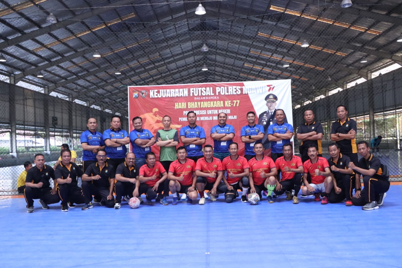NGAWI – Kilasfakta.com, Semarak menyambut Hari Bhayangkara ke-77, Polres Ngawi melaksanakanan kegiatan Friendly Match Futsal, pada Senin (19/06/2023) sampai dengan Selasa (20/6/2023)