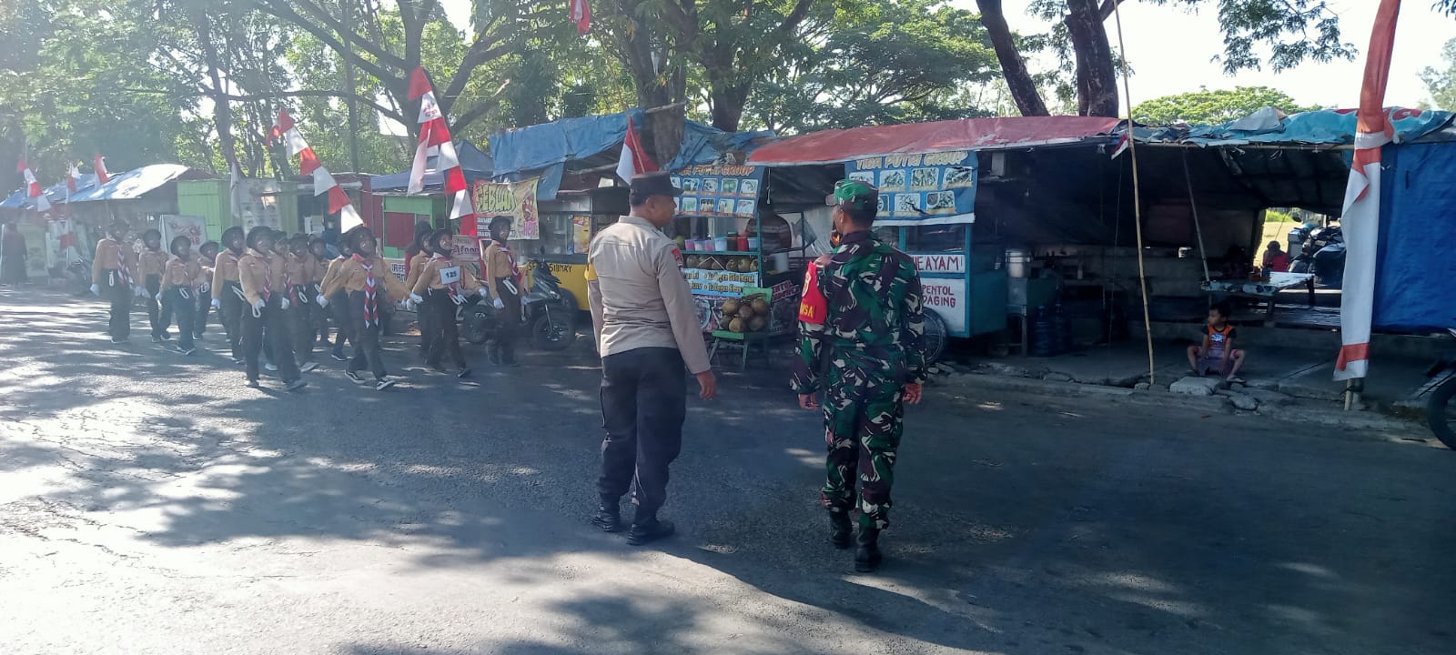 NGAWI – Kilasfakta.com, Semarakkan kegiatan dalam menyambut HUT RI ke 78 Tahun, Babinsa Koramil 0805/13 Kedunggalar melaksanakan pengamanan Gerak Jalan di Kec. Kedunggalar Kabupaten Ngawi, Sabtu (12/8/2023).