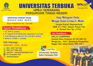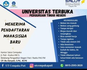 PATI – Kilasfakta.com Universitas Terbuka merupakan perguruan tinggi negeri di Indonesia. Semakin hari perguruan tinggi yang identik dengan perkuliahan jarak jauh ini memperbaiki layanannya. Universitas Terbuka bertekad untuk menjadi perguruan tinggi terbaik di Indonesia.