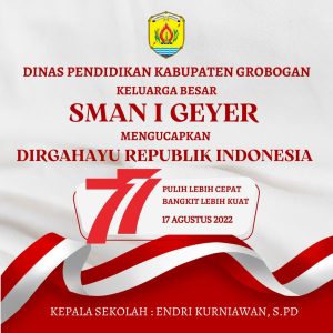 SMA NEGERI 1 GEYER MENGUCAPKAN DIRGAHAYU KEMERDEKAAN RI KE 77 Navigasi pos DEWAN PERWAKILAN RAKYAT DAERAH (DPRD) KABUPATEN GROBOGAN MENGUCAPKAN DIRGAHAYU KEMERDEKAAN RI KE 77 SMK NEGERI 1 PURWODADI MENGUCAPKAN DIRGAHAYU KEMERDEKAAN RI KE 77 TAHUN 2022