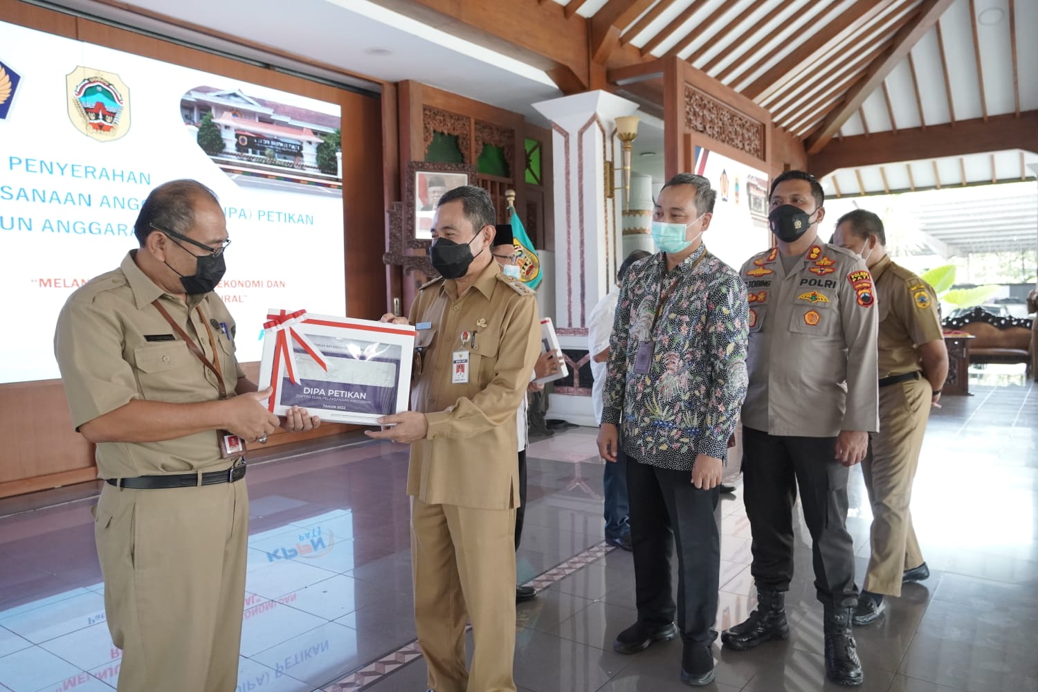 PATI – Kilasfakta.com, Bupati Pati Haryanto menghadiri Penyerahan Daftar Pelaksanaan anggaran (DIPA) petikan tahun anggaran 2022 yang bertempat di Pendopo Kabupaten Pati, Senin (13/12).