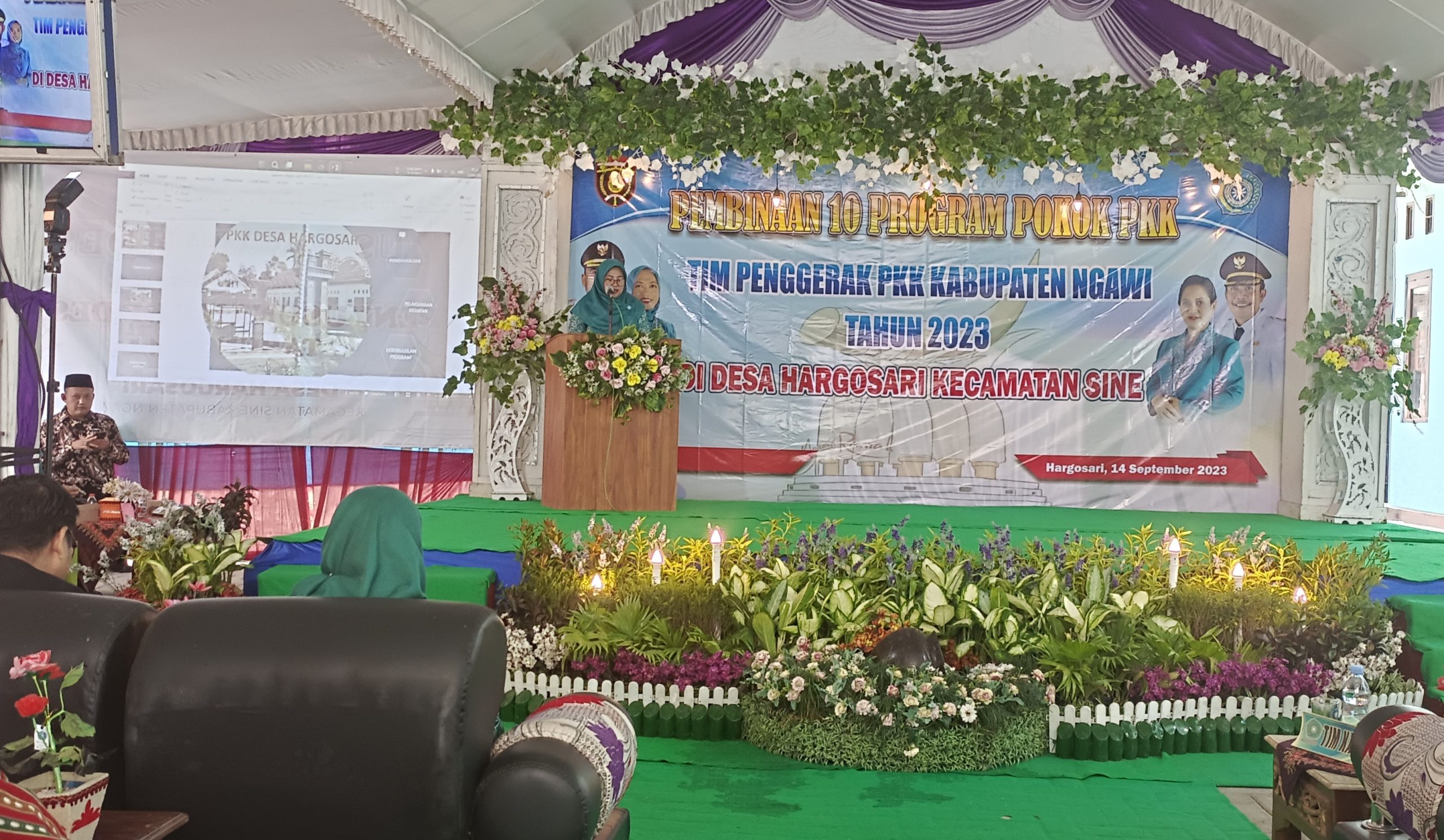 Ana Ony Anwar Harsono (Ketua TP-PKK kabupaten Ngawi) dalam sambutannya sangat mengapresiasi pelaksanaan program kerja PKK di Desa Hargosari serta menyampaikan dan memberi masukan beberapa hal terkait pelaksanaan kegiatan 10 program pokok PKK.