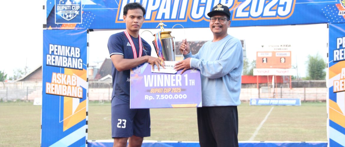REMBANG – Kilasfakta.com Tim sepakbola Rembang 1 sukses menjadi juara pada turnamen Bupati Cup U23 tahun 2025, usai kalahkan Kaliori dengan skor 9-1 di babak final, Minggu (28/7/2025). Usainya kompetisi yang digelar di stadion Krida Rembang itu,Bupati Rembang, Harno meminta tim pemandu bakat dapat menindaklanjuti pemain muda yang tampil memukau.
