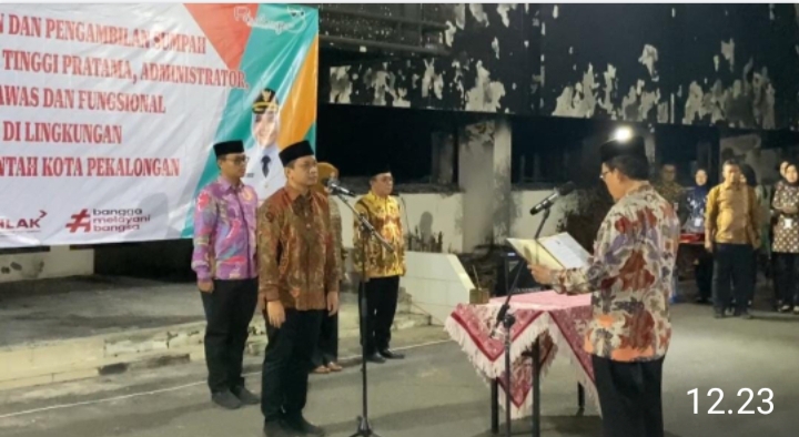 PEKALONGAN – Kilasfakta.com, Sebuah pemandangan tak biasa tersaji di jantung Pemerintahan Kota Pekalongan, pada Senin malam 22 September 2025. Alih-alih di ruang seremonial yang megah, Wali Kota Pekalongan, Achmad Afzan Arslan Djunaid, memilih halaman Setda yang masih berserakan puing-puing sisa aksi anarkis 30 Agustus lalu sebagai panggung pelantikan 56 pejabat baru. Keputusan ini bukan tanpa makna, melainkan sebuah pesan kuat yang diukir di atas kehancuran, menyerukan semangat kebangkitan dan kerja keras tanpa henti.