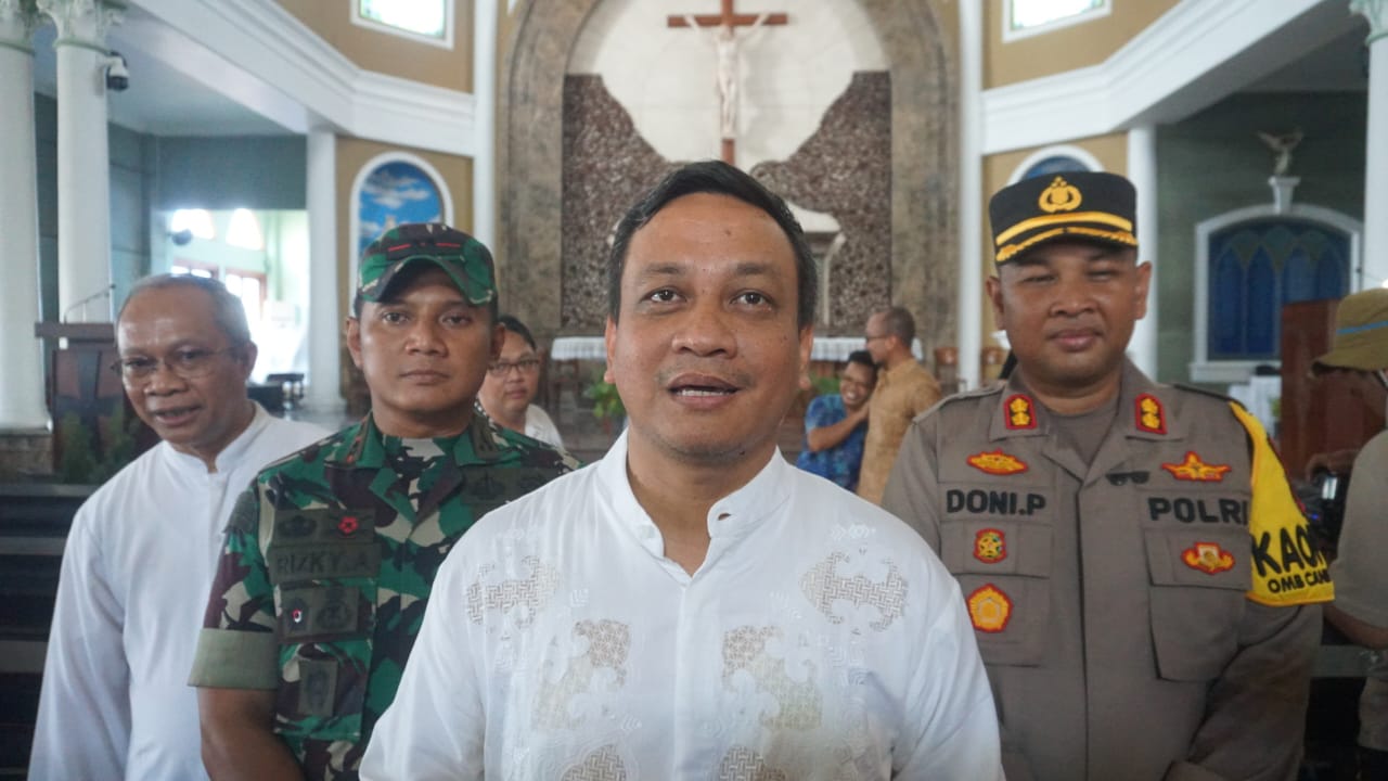 PEKALONGAN – Jurnalsatu.Id, Menjelang perayaan malam Natal tahun 2023, Walikota Pekalongan, HA Afzan Arslan Djunaid didampingi Forkopimda Kota Pekalongan, melakukan pengecekan dan monitoring ke sejumlah gereja yang ada di Kota Pekalongan. Pengecekan dan monitoring dilakukan untuk memastikan kenyamanan dan keamanan jemaat gereja yang hendak melaksanakan perayaan Natal di Kota Pekalongan, Minggu (24/12/2023).