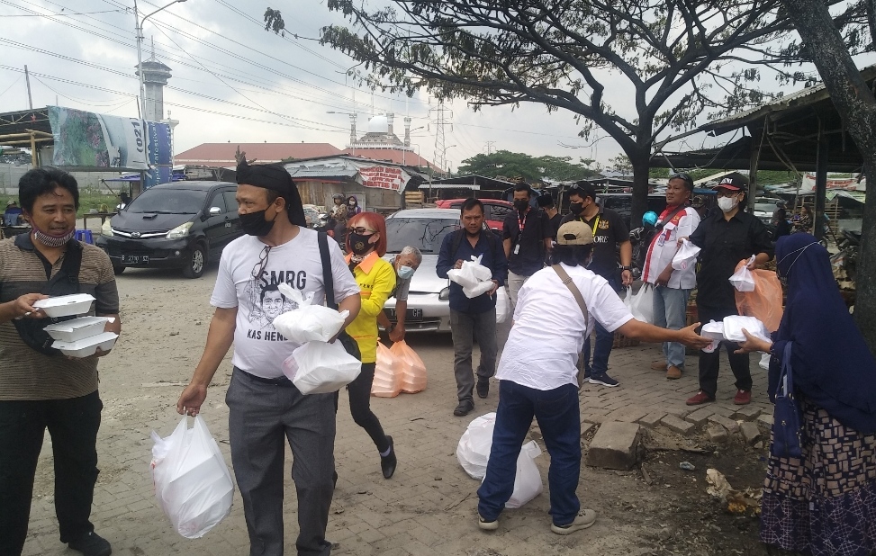 SEMARANG – Kilasfakta.com – Sebanyak Kurang lebih 200 Paket nasi Kotak kembali dibagikan oleh jurnalis dalam wadah Jaringan Jurnalis Independen (JJI) dari berbagai organisasi Pers dan dari berbagai media Online dan TV turun dijalan dalam rangka kegiatan jumat berkah yang dilaksanakan di lokasi Bekas Kebakaran kompleks relokasi Pasar Johar Kota Semarang, jumat (04/02/2022)